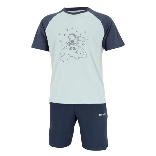 Dressa Home űrhajós mintás rövid ujjú pamut rövidnadrágos férfi pizsama - kék színben kényelmességet és puhaságot garantál. Két részes rövid ujjú pizsama, a felső része mintás, az alsó része rövidnadrágos, sötétkék színben pompázik ami még varázslatosabbá teszi ezt a pihe-puha modellt.
