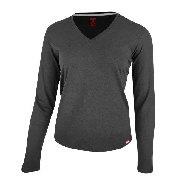 Dressa Premium hosszú ujjú V nyakú női pamut póló- sötétszürke (S-XXL)