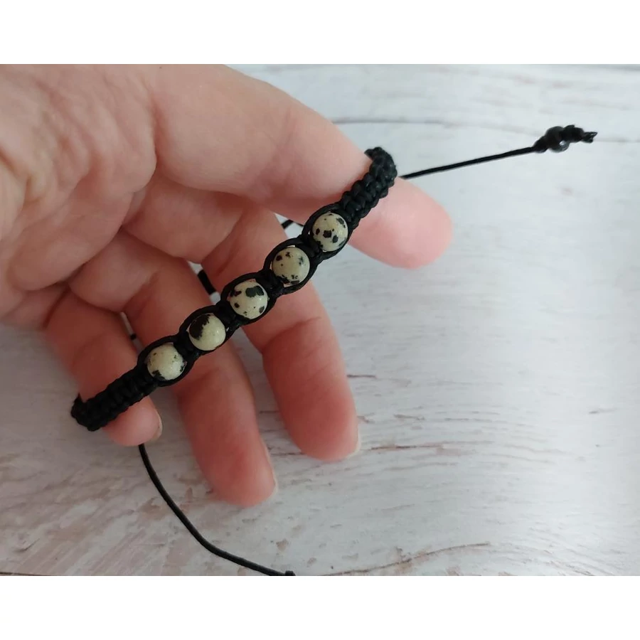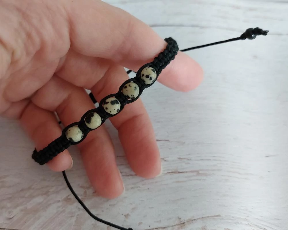 Fekete makramé karkötő dalmata jáspis gyöngyökkel