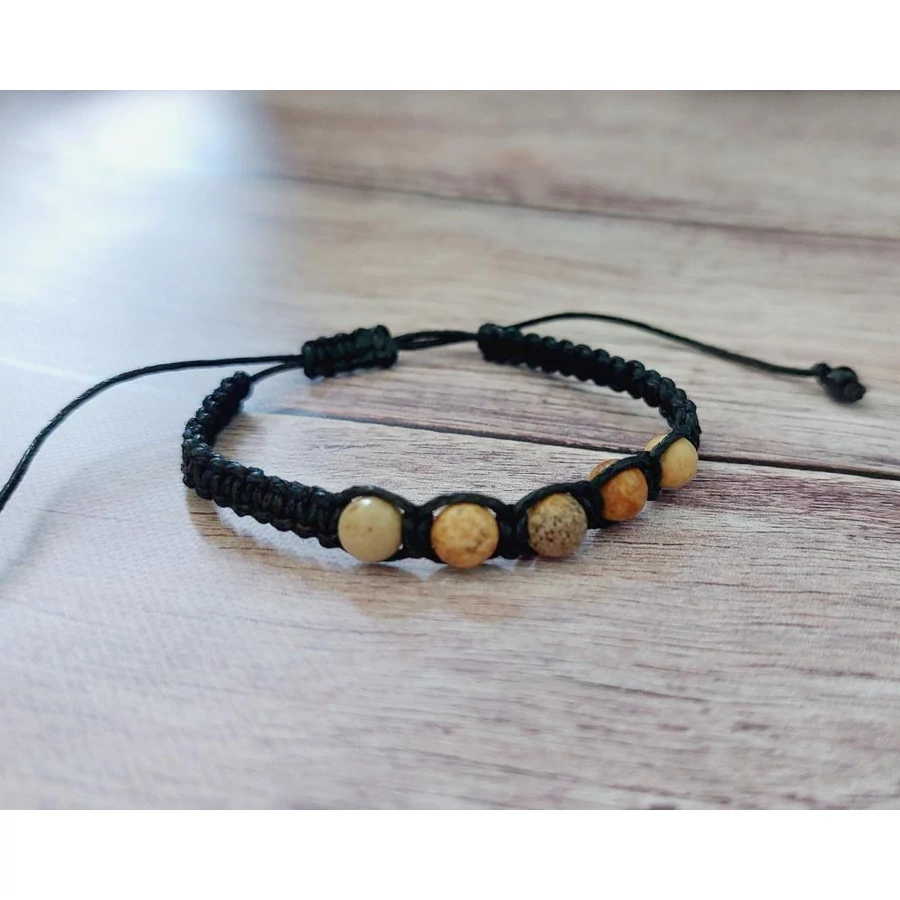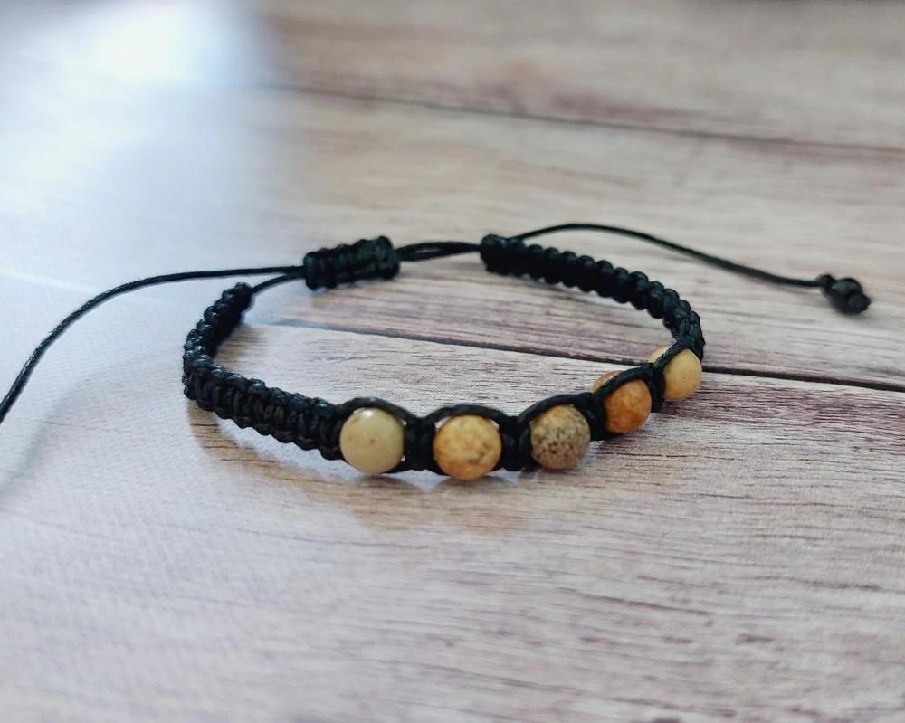 Fekete makramé karkötő tájképjáspis ásvány gyöngyökkel Amit a jáspisról érdemes tudnod: Gyakori előfordulása és a földszínek széles skálája miatt a jáspist ősidők óta használják dísztárgyak és pecsétek készítésére. Mágikus ereje miatt is nagyra értékelték. Úgy hitték, hogy túlvilági szellemi cselszövések ellen véd és a szerelmi bánatot mérsékli. Gyógyhatás: A vörös jáspis sokféle gyógyhatással bír. A szívközpontban a keringést, a köldökcentrumban és a vitalitáscentrumban, leginkább hegyikristállyal és magnezittel együtt gyomor- és emésztési zavarokat gyógyíthatunk vele, megkönnyebbülést hoz puffadás és székrekedés esetén. Ezenkívül aktiválja a máj, epe, lép és a hasnyálmirigy működését. Közvetlenül az érintett helyre téve megkönnyíti a vese- és húgyúti betegségek kezelését, a vesehomok és kövek eltávozását. Rendszertelen és fájdalmas menstruációnál hasznos, hozzájárul a gyors és komplikációmentes szüléshez. A hagyomány szerint hatásos szer epilepsziás rohamok és köszvény ellen. A tarka jáspis hasonló hatású. A szervezetnek erőt, energiát ad és a test valamennyi életfontosságú szervét mozgósítja. A zöld jáspis a napfonatcsakrára helyezve csökkenti a gyomornedvek savtartalmát. A kövek hatását növelhetjük jáspisvíz ivásával, éhgyomorra kis kortyokban kell inni. Általánosságban elmondható, hogy a jáspis megszabadítja a szervezetet a méreganyagoktól. A sárga jáspis különösen emésztési problémák, bélbetegségek, székrekedés és gyomorfekély kezelését támogatja. A pop-jáspis serkenti a vese- és epeműködést, a vérkeringést és a meggyengült szervezetnek biztosítja a szükséges energiát. Lelki hatás: Valószínűleg a vörösesbarna jáspis a legismertebb, amelyet vörös jáspisnak neveznek. Színe aktiválja akaratunkat, bátorságunkat és kitartásunkat. Régi hagyomány szerint a jáspist minden kő anyjaként kezelték, amely a föld elemi erejét, bölcsességét és mindent átfogó türelmes szeretetét közvetíti. Egyszerű erős rezgése és tisztító energiája szerénységre és önzetlenségre, együttérzésre, megértésre és türelemre késztet, fejleszti természetes törekvésünket, hogy jót tegyünk. A zöld jáspis elsősorban a szívre hat. Napjainkba egyensúlyt és harmóniát hoz. A sárga jáspis a kitartás és megértés köve, segít, hogy családi életünkben türelmesek és alkalmazkodóak legyünk. Segítségével megtanulhatjuk, hogy a kis félreértések az emberek közötti kapcsolatokban áthidalhatóak. A tarka jáspisok a kreativitás és a fantázia kövei, az alkotóerőt támogatják. Nikkelmentes ékszer. Egyedi tervezés alapján készült kézműves ékszer.
