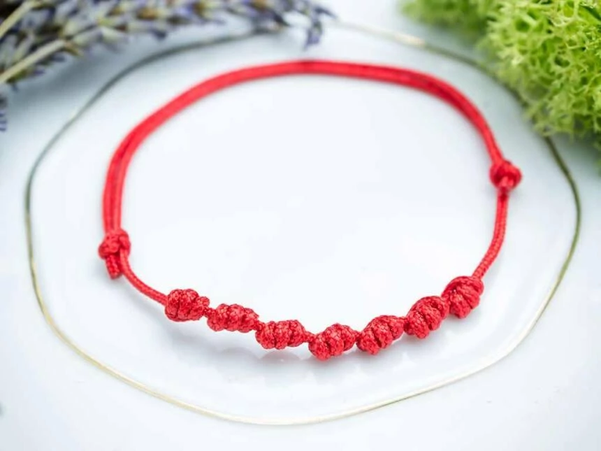 KABBALA VÉDELMEZŐ VÖRÖS TEXTIL KARKÖTŐ HÉT CSOMÓVAL