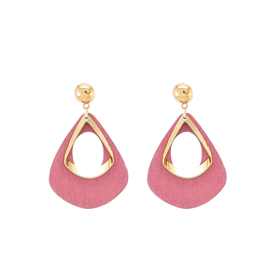 KÖLN női geometrikus fülbevaló geometrikus vízcsepp alakú, stekker zárral berakható fülbevaló. Az esőerdő csodálatos orchideáinak rózsaszín színét idéző fa alapanyagú fülbevaló. Hossza: 5.5 cm Színe: arany, rozé rózsaszín Anyaga: ötvözet, fa