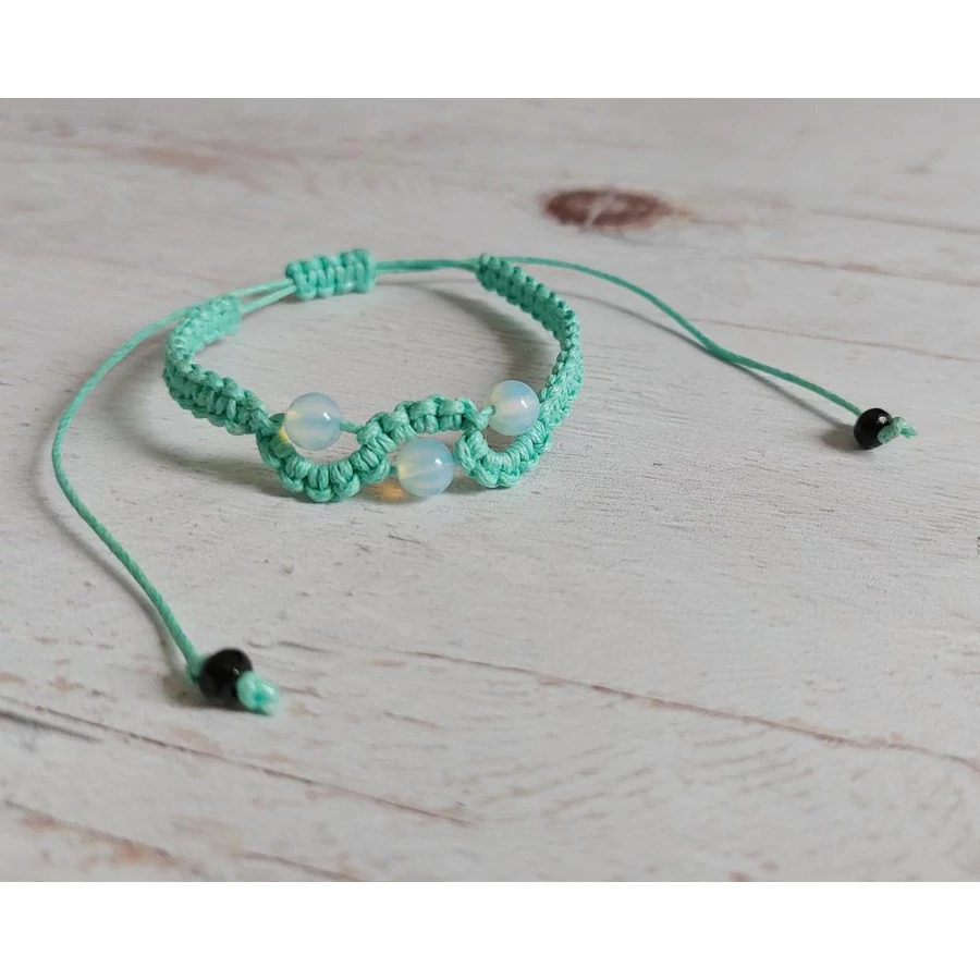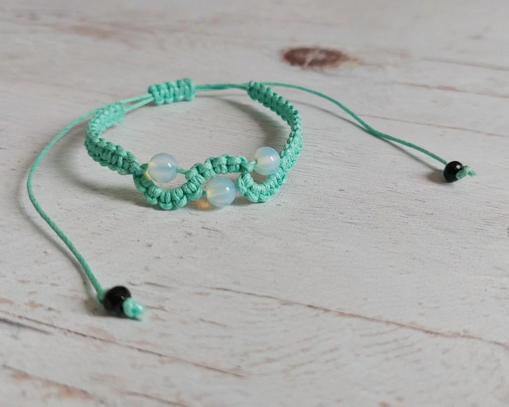 Menta hullámos makramé karkötő opalit ásványgyöngyökkel