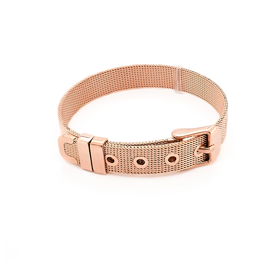 PARIS nemesacél karkötő antiallergén, flexiblis tulajdonsága miatt tökéletesen illeszkedik a csuklóra,nagyon kényelmes viseletet biztosít.A ráhelyezhető charmokkal mindig a hangulatnak vagy az alkalomnak megfelelő körkötőt alkothatsz. Színe: rózsaarany Anyaga: ötvözet Építs flexibilis karkötőt az általad választott charmokkal!