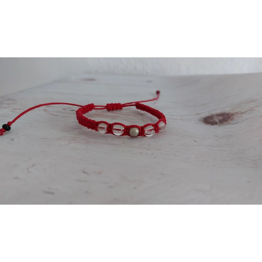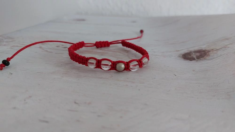 Piros makramé karkötő hegyikristály és acél gyöngyökkel