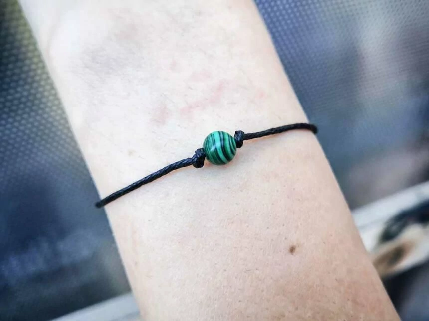 Speciális csúszó csomók segítségével van elkötve az anyag, így méretre tudod igazítani. Fontos, hogy óvatosan húzd a szálat a csomókon keresztül.