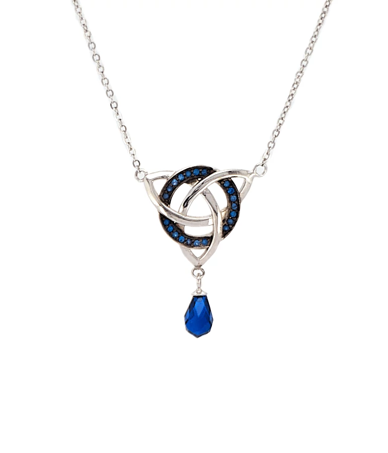 SALINAS női nyaklánc szimbolikus jelentéssel bíró ezüst nyaklánc. Ez az elegáns 925 ezüstből készült, zafírkék színű kristály berakásos, három egymásba fonódó kör metszet alakú medál a nyaklánc éke. Medál mérete: 2,5 x 2 cm Hossza: 37-42 cm Színe: ezüst, zafírkék Anyaga: 925 ezüst