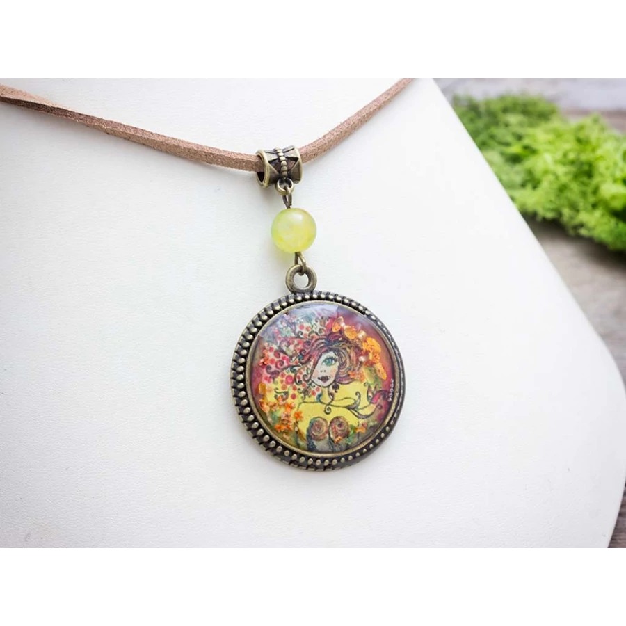 Sárga lányka műgyanta préselt virágos nyaklánc