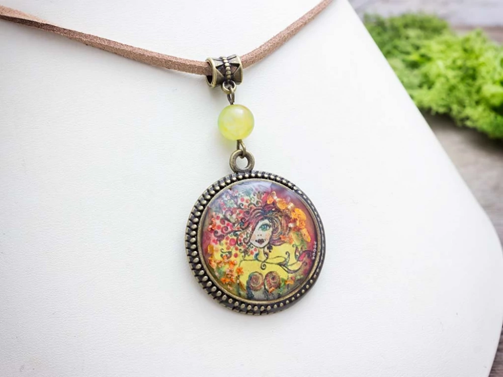 Gyanta mögé rejtett reprint festmény és préselt virág kompoziciója ölt testet a medálban.nnnn Nikkelmentes ékszer.nn Egyedi tervezés alapján készült kézműves ékszer.nn Amennyiben egyéni kérésed van, vagy nem találod, amit szeretnél, keress engem bátran.n