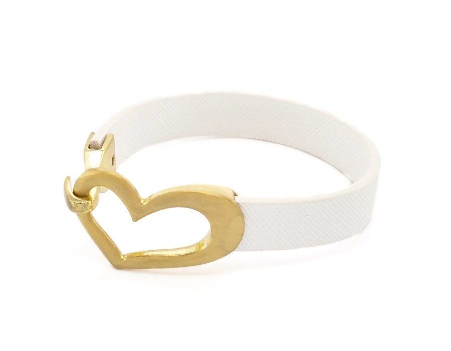 SYLVANIA karkötő kecses, vékony, elegáns, igazán nőies, aszimmetrikus szívvel díszített liliomfehér műbőr karkötő. Mindennapi viseletre, illetve alkalmakra is ajánlott ez a letisztult elegáns darab.